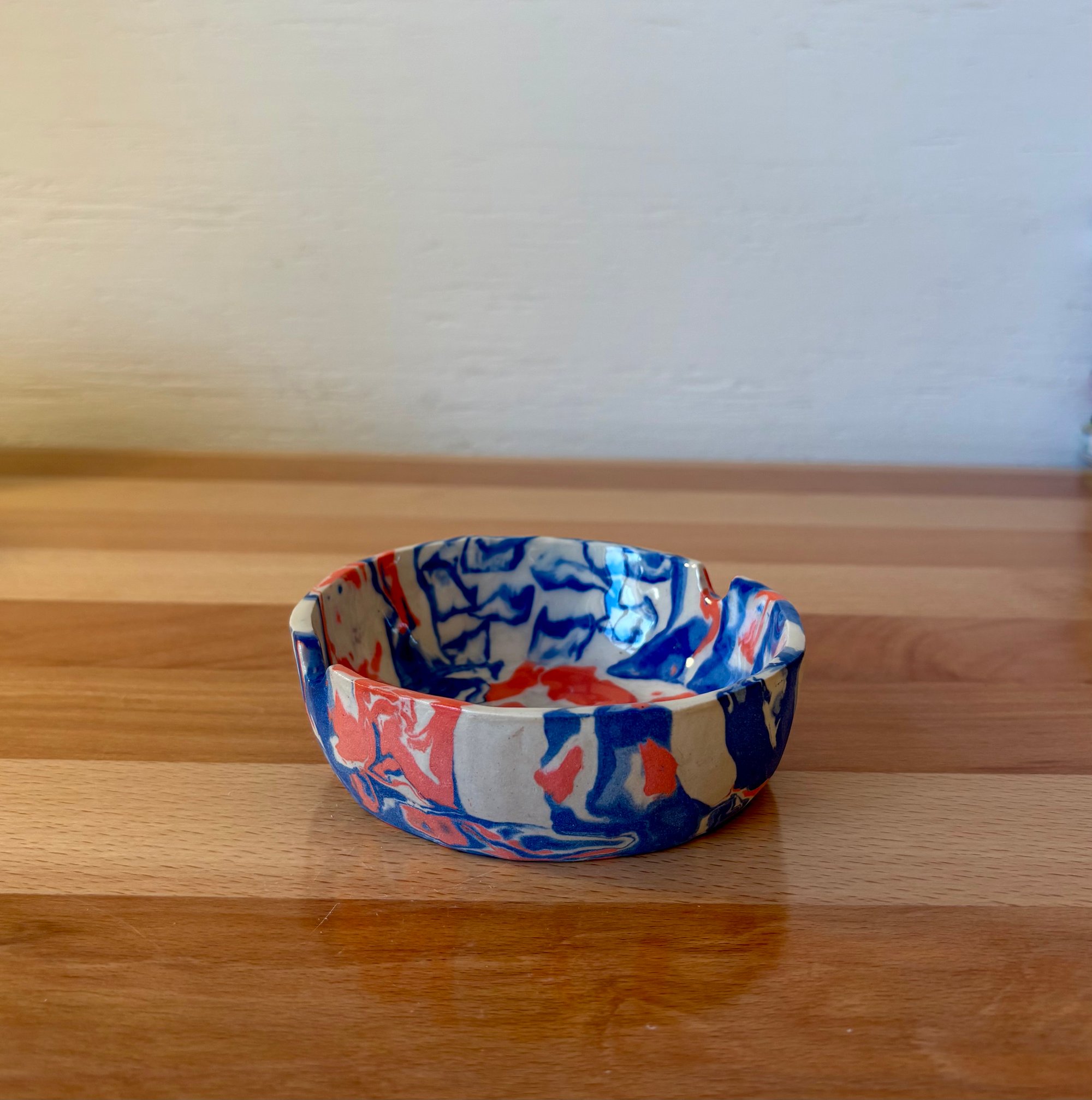 Nerikomi ash tray, Japanese colored clay technique.