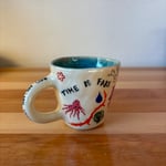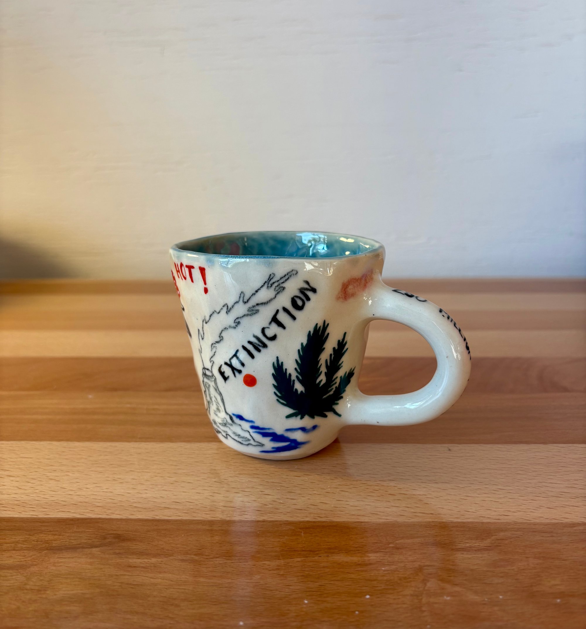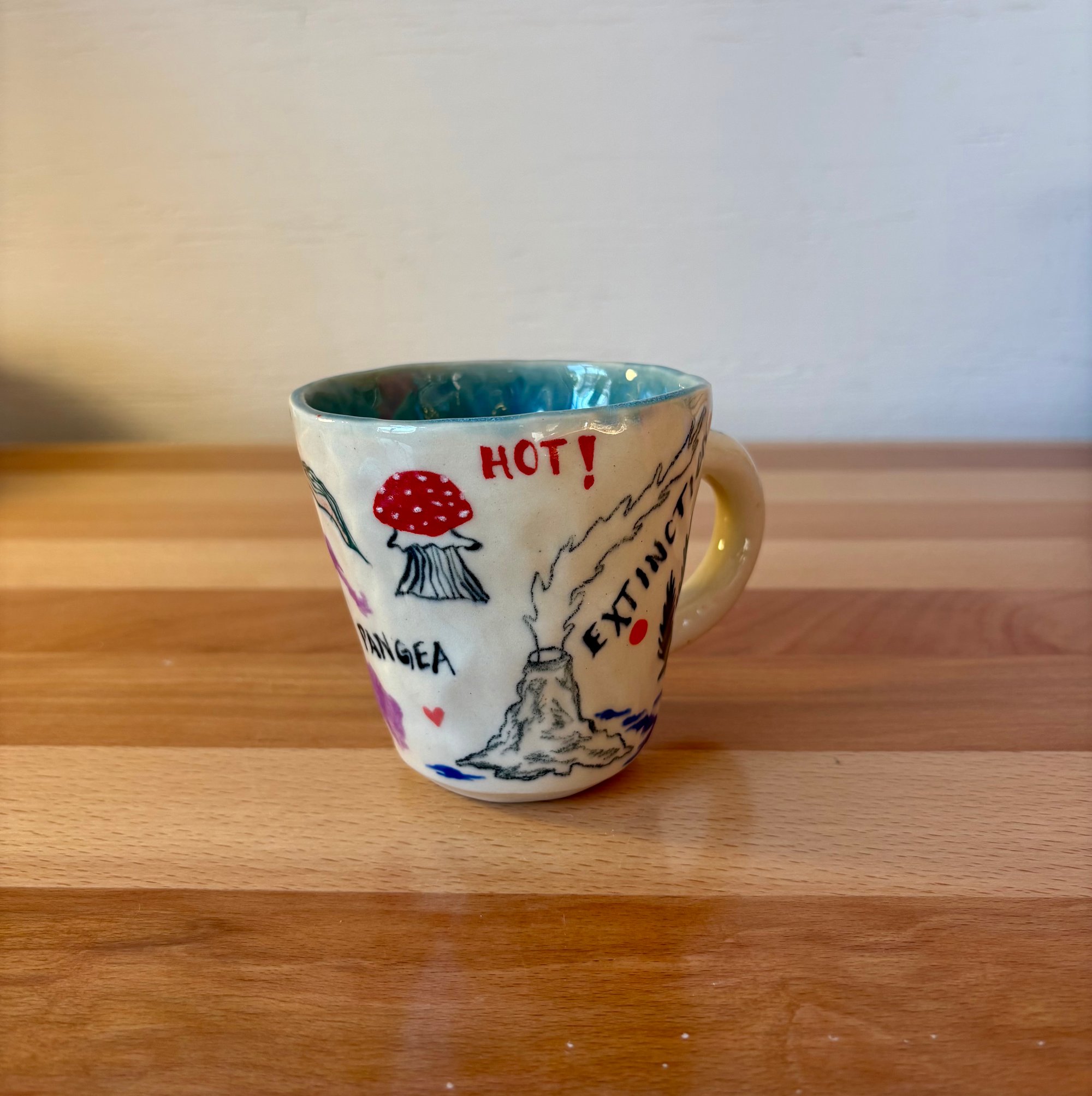 hand pinched mug with hand painted design.