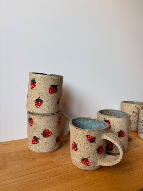 Each piece is unique and no two are the same. Each mug design is hand painted.